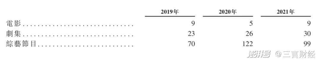 娛樂內(nèi)容活動(dòng)包括電影、劇集以及綜藝節(jié)目,管理團(tuán)隊(duì)會(huì)為公司旗下藝人搭建可參演優(yōu)質(zhì)娛樂內(nèi)容的機(jī)會(huì)。招股書顯示,2021年,公司簽訂旗下藝人出演電影的合同9份;劇集合同30份;綜藝節(jié)目合同99份。