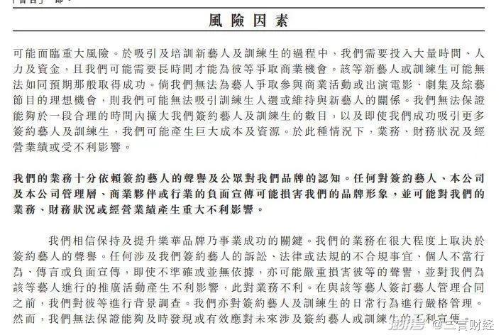 此外,如果公司與旗下簽約藝人或者訓(xùn)練生關(guān)系惡化,一定程度上也會(huì)影響公司財(cái)務(wù)狀況。