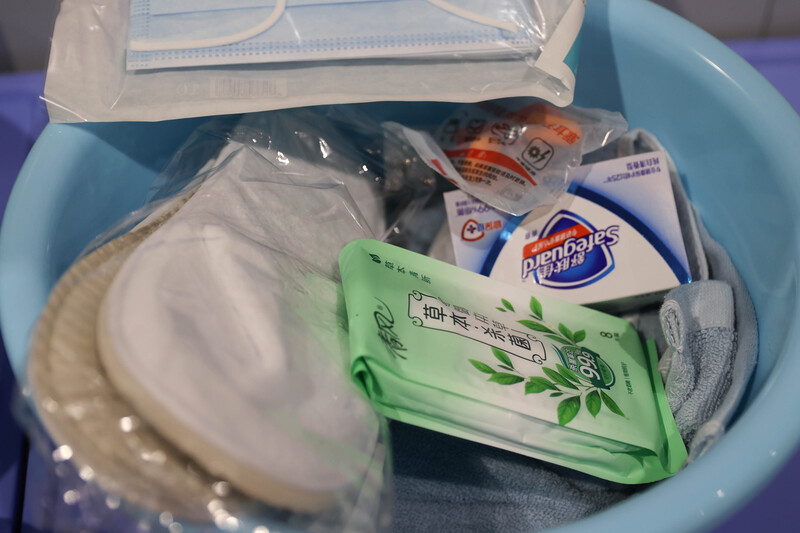 而在生活用品方面,床邊柜子上的臉盆里可謂“誠意滿滿”:除了市民們能想到的毛巾、牙刷、口罩、消毒濕巾、肥皂、洗手液、漱口杯、拖鞋之外,還有為睡眠質(zhì)量較差的感染者準(zhǔn)備的耳塞。管理團(tuán)隊(duì)負(fù)責(zé)人提到,“床上的枕頭、被褥等均準(zhǔn)備完畢,請(qǐng)入住的市民朋友們不必?fù)?dān)心,也不必?cái)y帶重復(fù)的物品?!蓖瑫r(shí),部分場(chǎng)館已開通移動(dòng)Wi-Fi,保證入住的大批量人員的通訊需求。