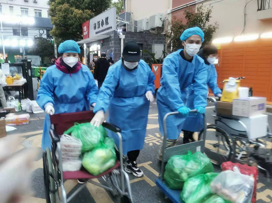 李娟在為居民配送物資(左一) 本文圖片均由受訪者提供
