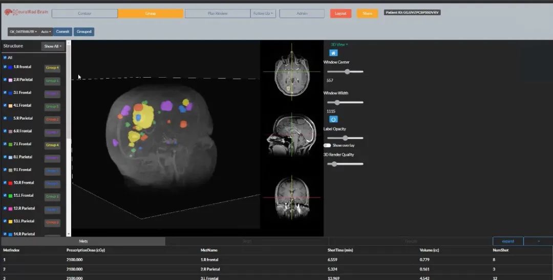 但立體放療工作量大且耗時長。如果醫(yī)生想為患者進行立體放療手術(shù),首先需要在輻射劑量最優(yōu)的情況下將它們分區(qū)照射,再由腫瘤醫(yī)生手動對每個病灶進行標注和追蹤,然后物理師再根據(jù)患者的個人情況,定制出精準的治療方案。工作量巨大且耗時。因此,腦轉(zhuǎn)移瘤患者通常無法獲得足夠資源幫助,這也令他們不得不鋌而走險,選擇全腦放療。