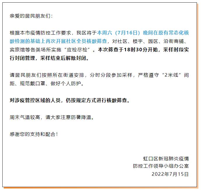 原標題:《事關核酸篩查!上海多區(qū)再發(fā)公告!》