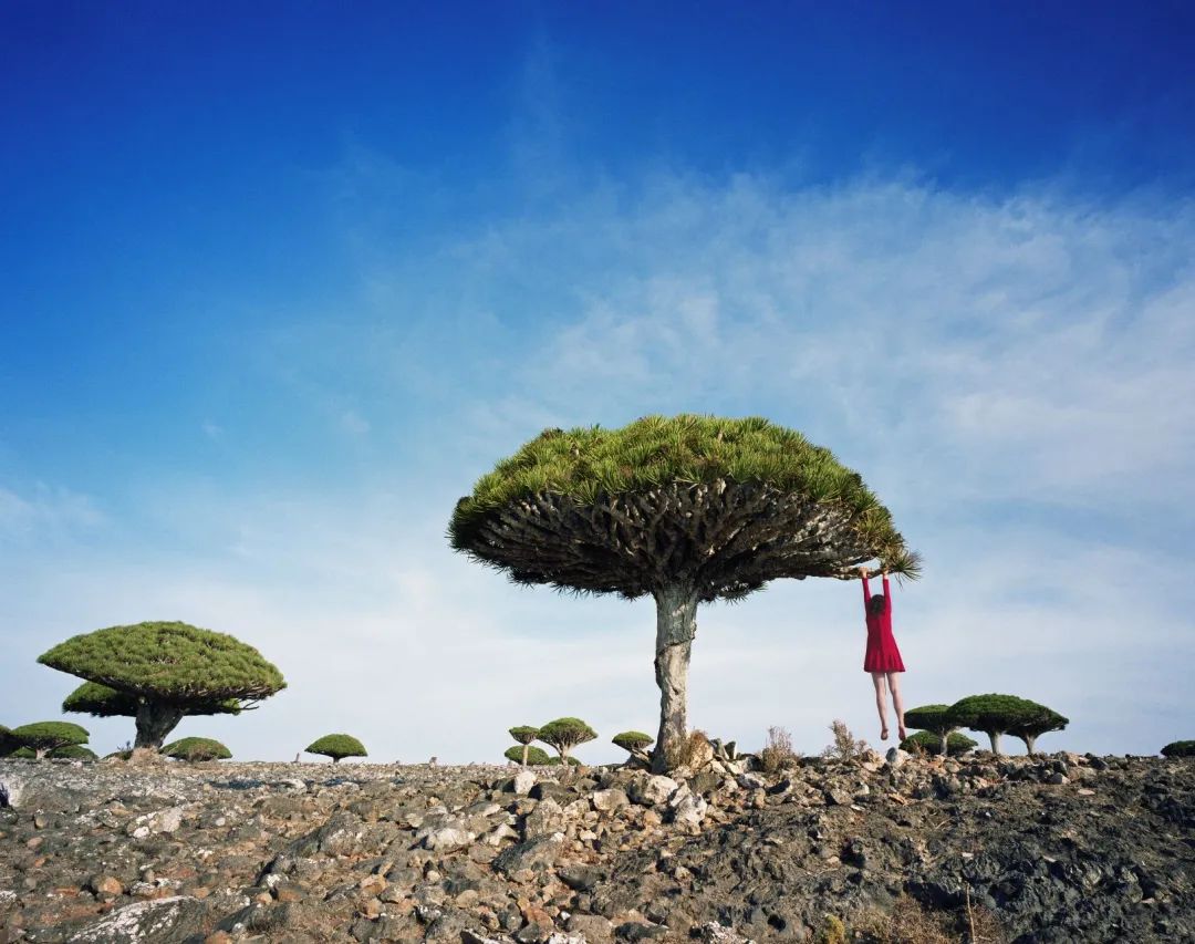 “我把自然以及我在世界各地遇到的自然當(dāng)作畫布和畫筆。它們是我所有項(xiàng)目的‘共同創(chuàng)作者’。我的許多照片都是在偏遠(yuǎn)且崎嶇的地區(qū)拍攝的,例如沙漠(阿曼)或島嶼(馬達(dá)加斯加、索科特拉島和瓦努阿圖)。這些孤立的風(fēng)景在我編排的“表演”中成為真正的演員。與當(dāng)?shù)鼐用衩芮泻献鲾?shù)周的準(zhǔn)備工作最終形成了一個(gè)場景,所有這一切都在拍攝過程中被捕捉到。”(斯嘉麗·霍夫特·格拉夫蘭德)