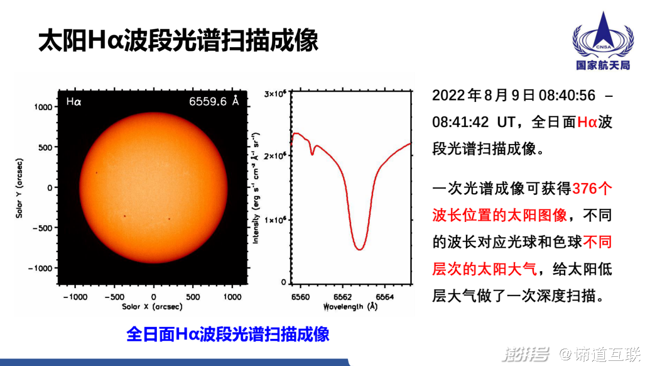 其中,Hα成像光譜儀進(jìn)行光譜掃描成像,分辨率達(dá)到了0.0024納米,每張光譜掃描圖像實(shí)際上都包含了300多張照片,分別對(duì)應(yīng)了光球?qū)雍蜕驅(qū)硬煌叨忍幍奶?yáng)圖像,因此相當(dāng)于給太陽(yáng)低層大氣做了一次“CT”掃描。在每一張“CT”圖上,又反映了日面上近1600萬(wàn)個(gè)點(diǎn)的信息。根據(jù)這些譜線的精細(xì)結(jié)構(gòu),可反演出高精度的全日面色球和光球多普勒速度場(chǎng),發(fā)生在太陽(yáng)大氣中的活動(dòng)可被詳細(xì)記錄到,進(jìn)而研究太陽(yáng)活動(dòng)的物理過(guò)程。