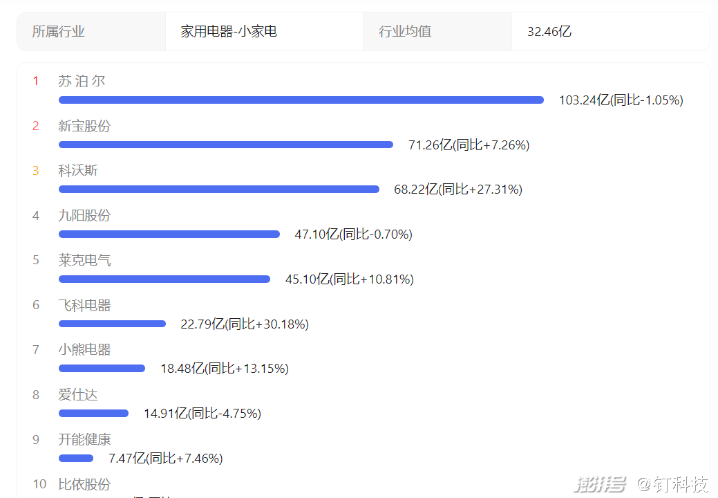 另一大小家電巨頭蘇泊爾上半年103億元的營收,同比下降1.05%;凈利潤為9.3億元,同比增長7.77%。而2021年同期,蘇泊爾營收、凈利潤均有兩位數(shù)的同比增速。