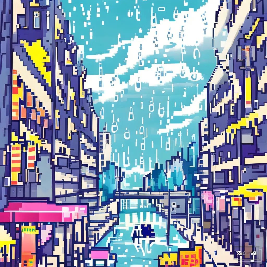 在文心一格平臺輸入“也無風雨也無晴”生成的像素風格作畫