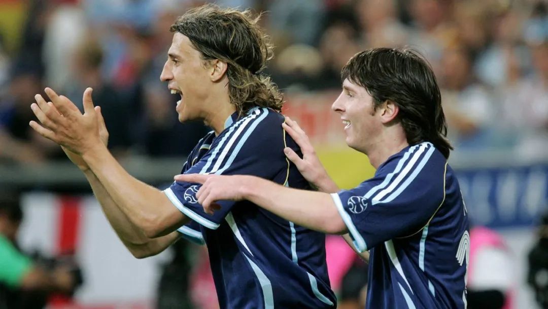 2006年世界杯,19歲的梅西首次登場(chǎng),助攻克雷斯波,幫助阿根廷4-0領(lǐng)先。/FIFA世界杯官方微博