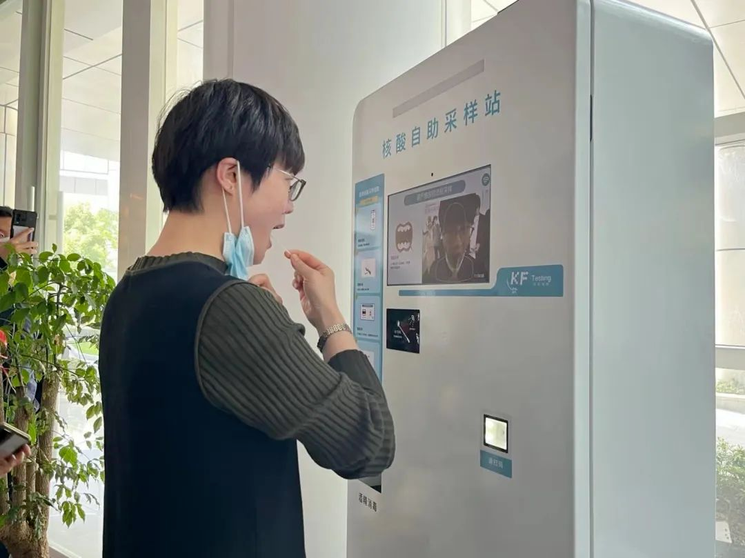 這一次不是機(jī)器人做核酸,真正是個人自主完成采樣,仿佛“核酸ATM”。