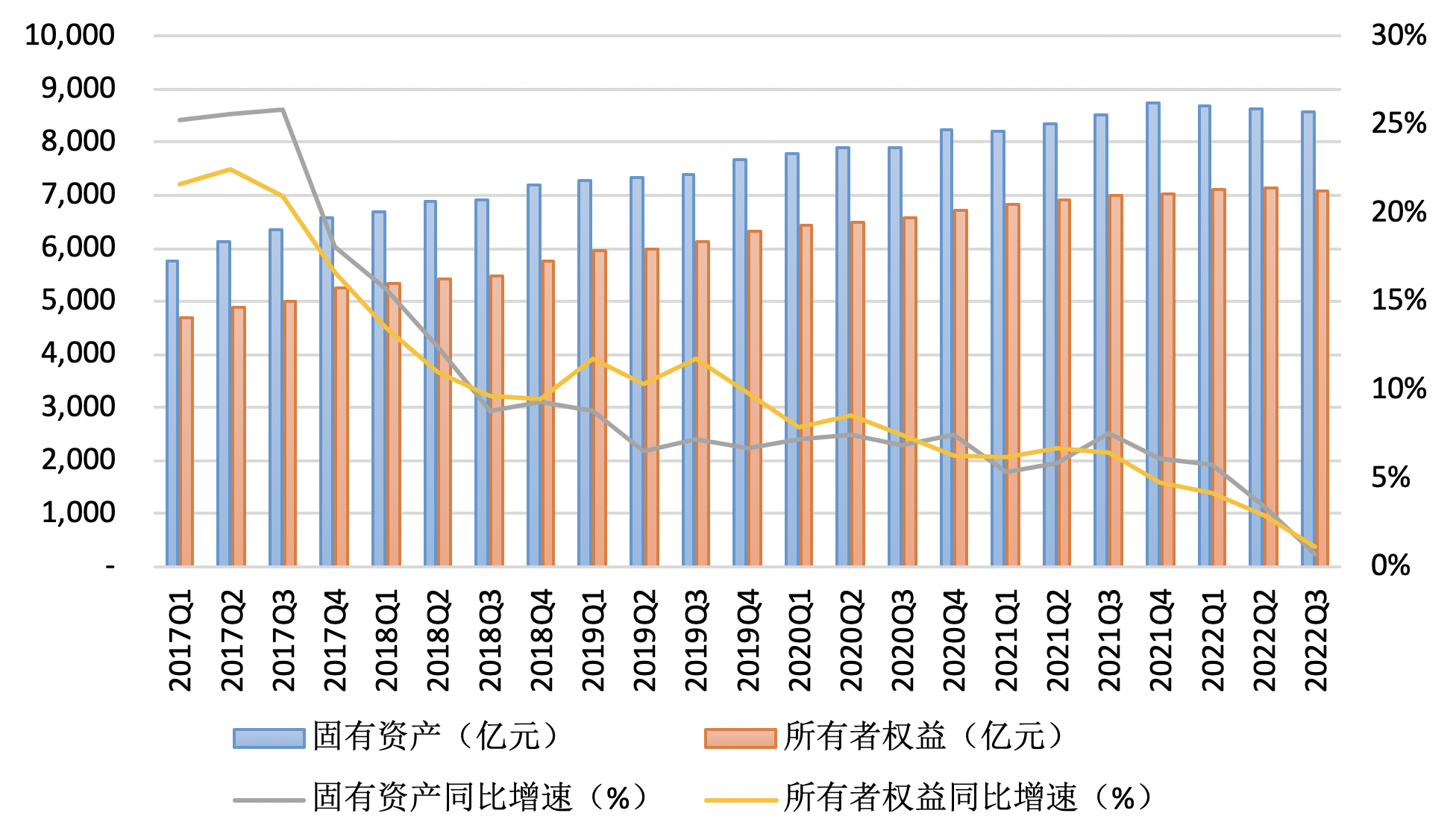 固有資產(chǎn)總額、所有者權(quán)益總額季度增速回落