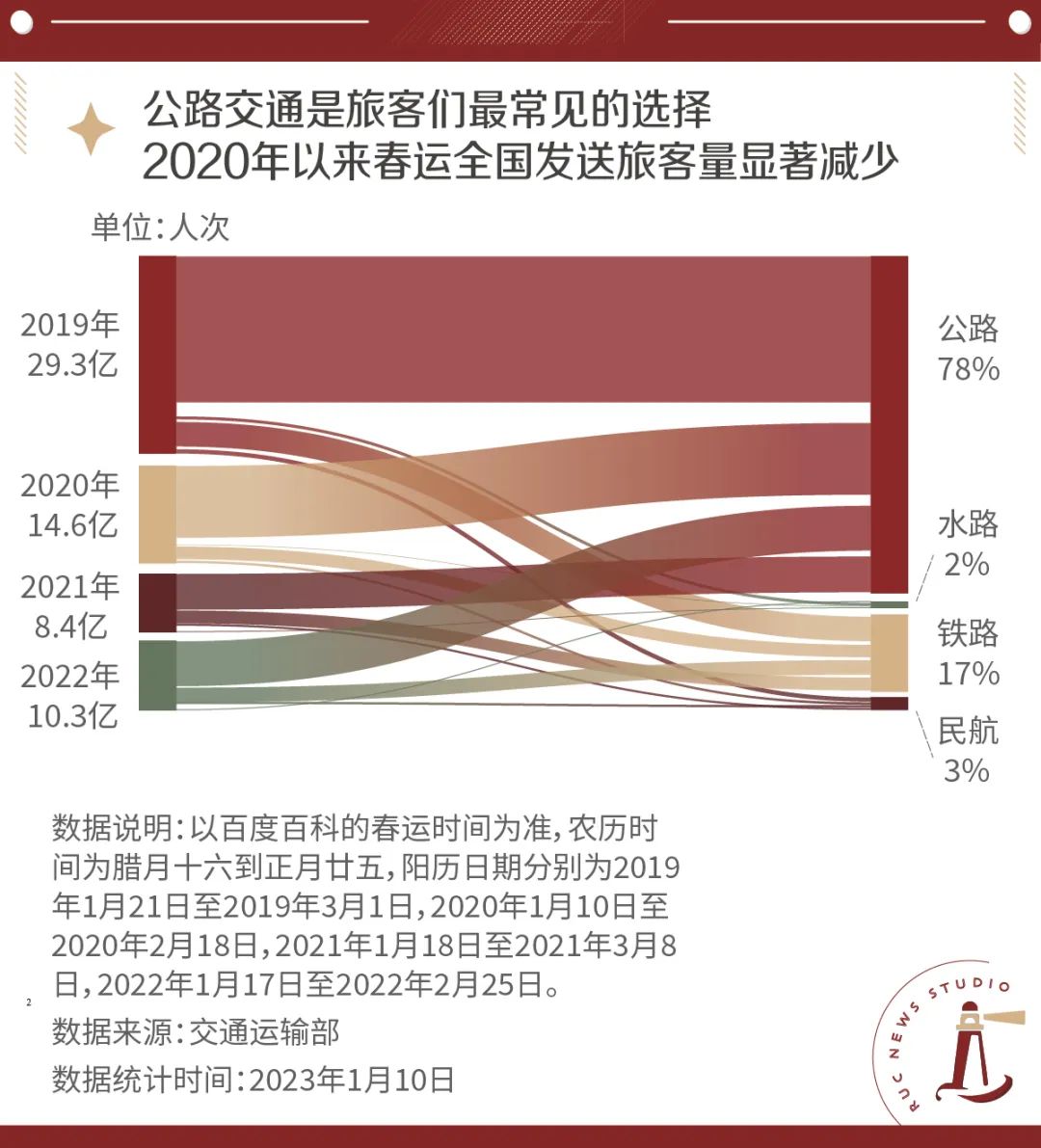 新冠疫情的出現(xiàn),也曾讓一年一度的大規(guī)模人口流動按下了減速鍵。三年來,歷史的列車呼嘯而過,在新型冠狀病毒感染調整為“乙類乙管”后,我們用數(shù)據(jù)定格了2023年的春運“路況”。
