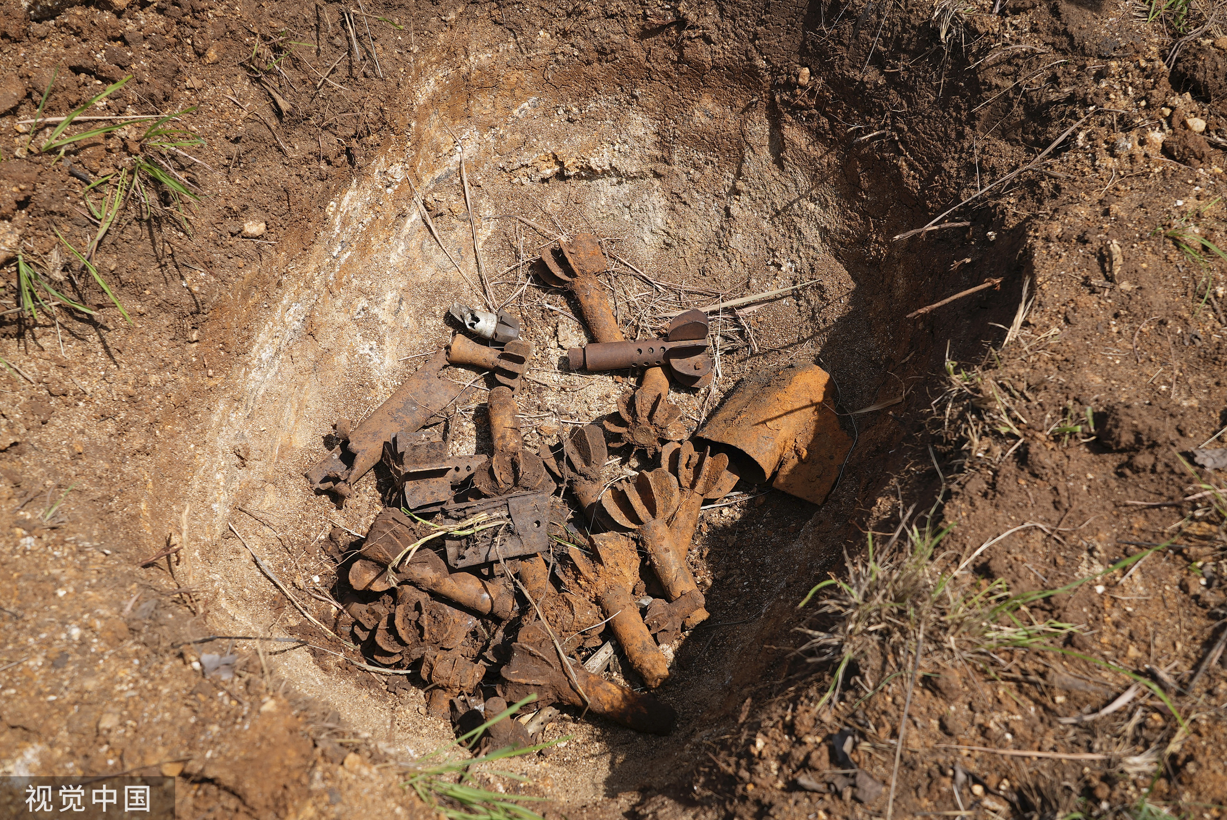 當(dāng)?shù)貢r(shí)間2023年5月11日,南蘇丹東赤道州Ayii,排雷人員在一個(gè)埋有集束彈藥的地點(diǎn)進(jìn)行排雷。 本文圖片 新華社、視覺中國(guó)、澎湃影像 圖