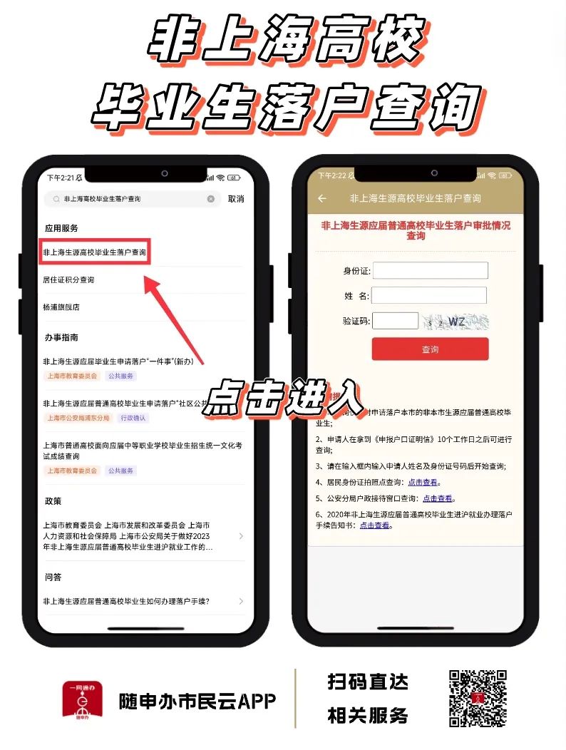 “隨申辦市民云”APP開通了【非上海高校畢業(yè)生落戶查詢】,可在線查詢落戶審批情況