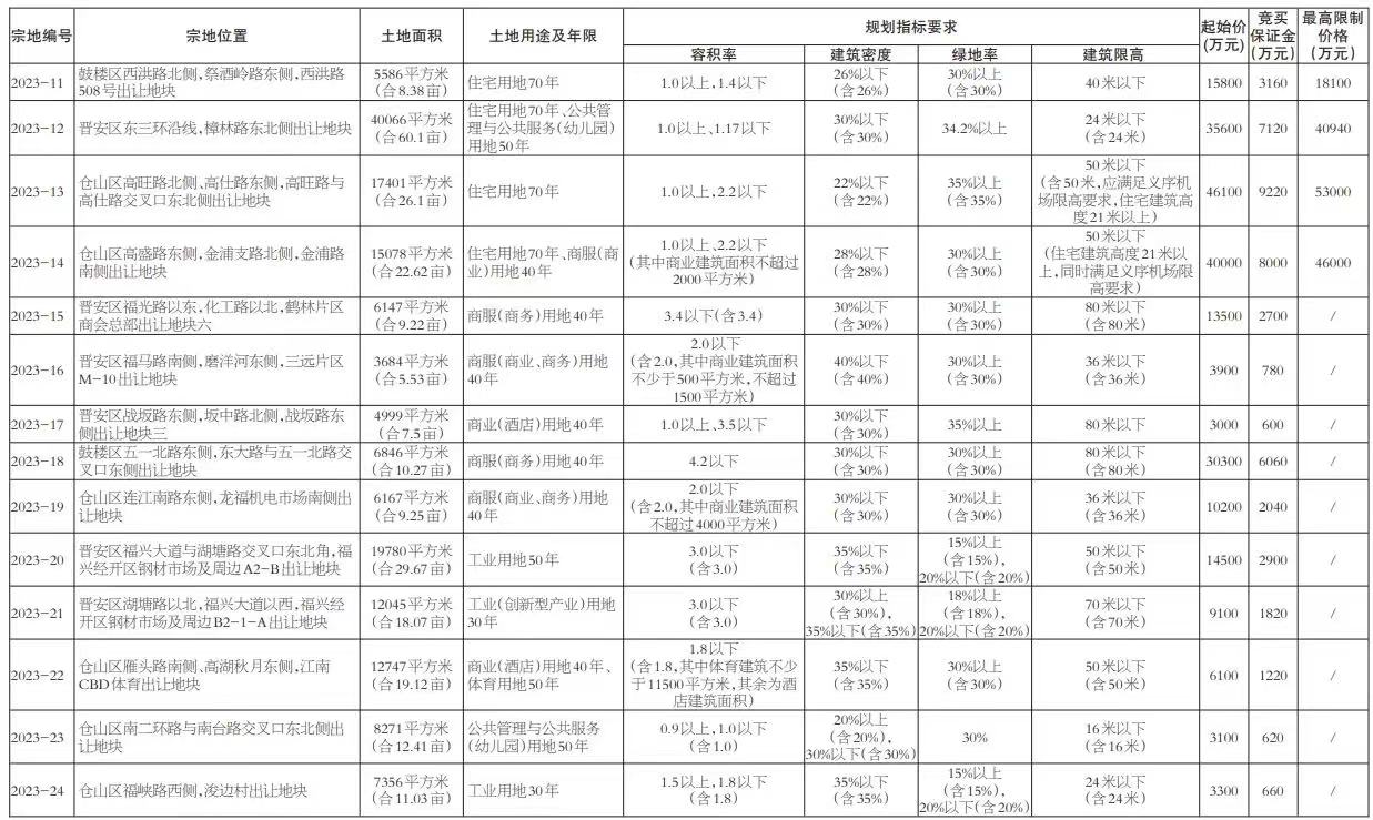 福州擬出讓14宗土地,鼓樓區(qū)地塊商品房銷售指導(dǎo)價(jià)4.2萬(wàn)元/平米