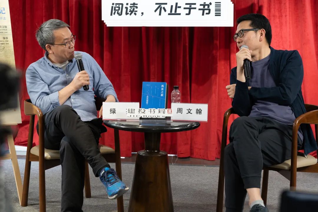 《孤星之旅:蘇東坡傳》作者周文翰(右)與書評(píng)人綠茶(左)在北京建投書局對(duì)談。