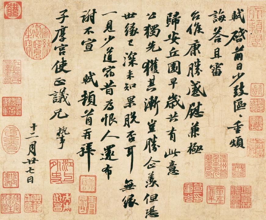 《致子厚宮使正議兄帖》,元祐元年(1086)十二月蘇軾寫給在蘇州閑居的章惇的信,信中語氣比較冷淡。