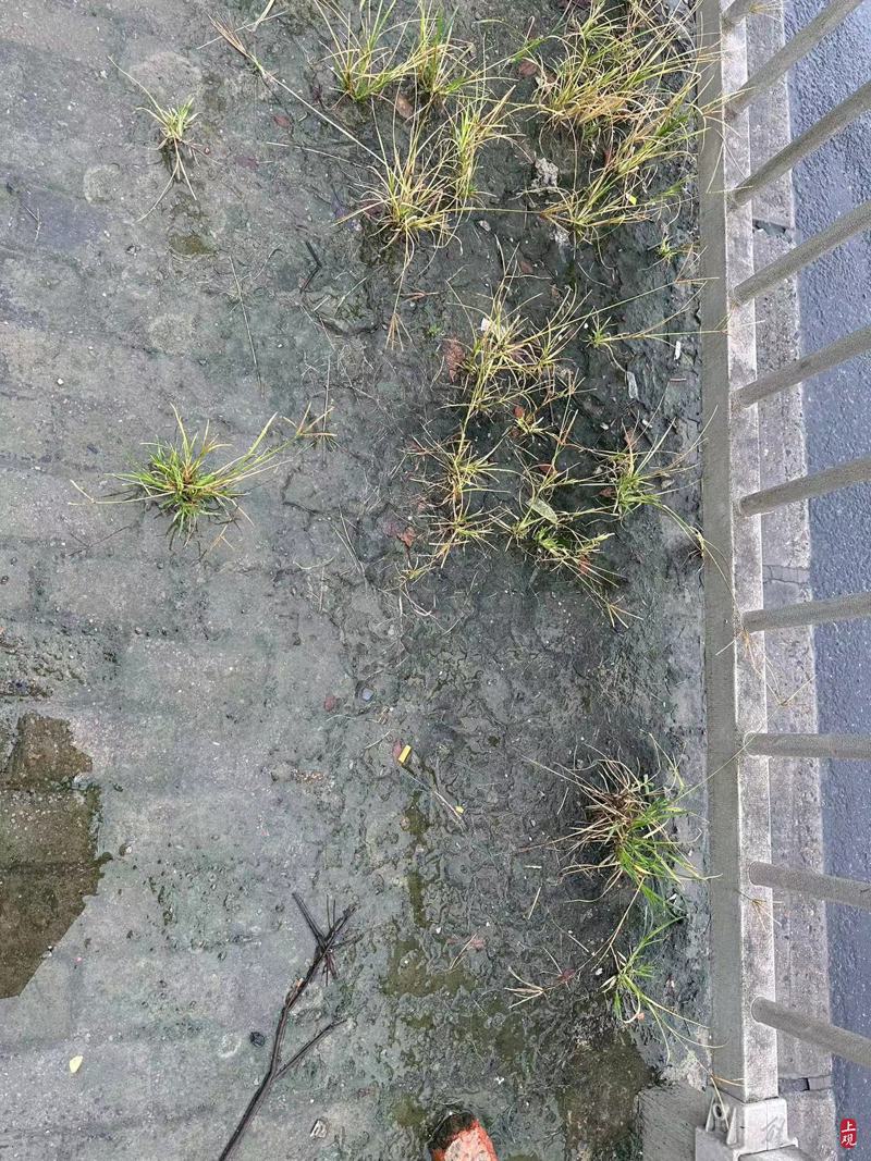 曹安公路沿線,人行道上雜草叢生。