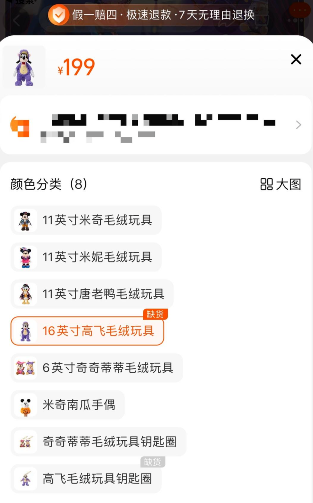一位不愿意透露姓名的網(wǎng)友告訴記者,自己9月26日去上海迪士尼樂園,希望能購買“紫龍高飛”商品,然而大約中午就已斷貨。