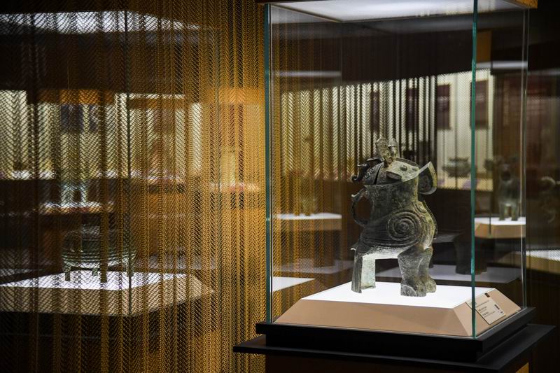 “宅茲中國(guó)——河南夏商周三代文明展” 展覽現(xiàn)場(chǎng)的“鸮尊”