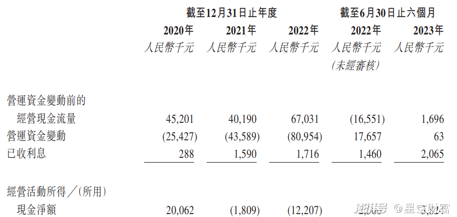 經(jīng)營活動現(xiàn)金凈流量 摘自《招股書》