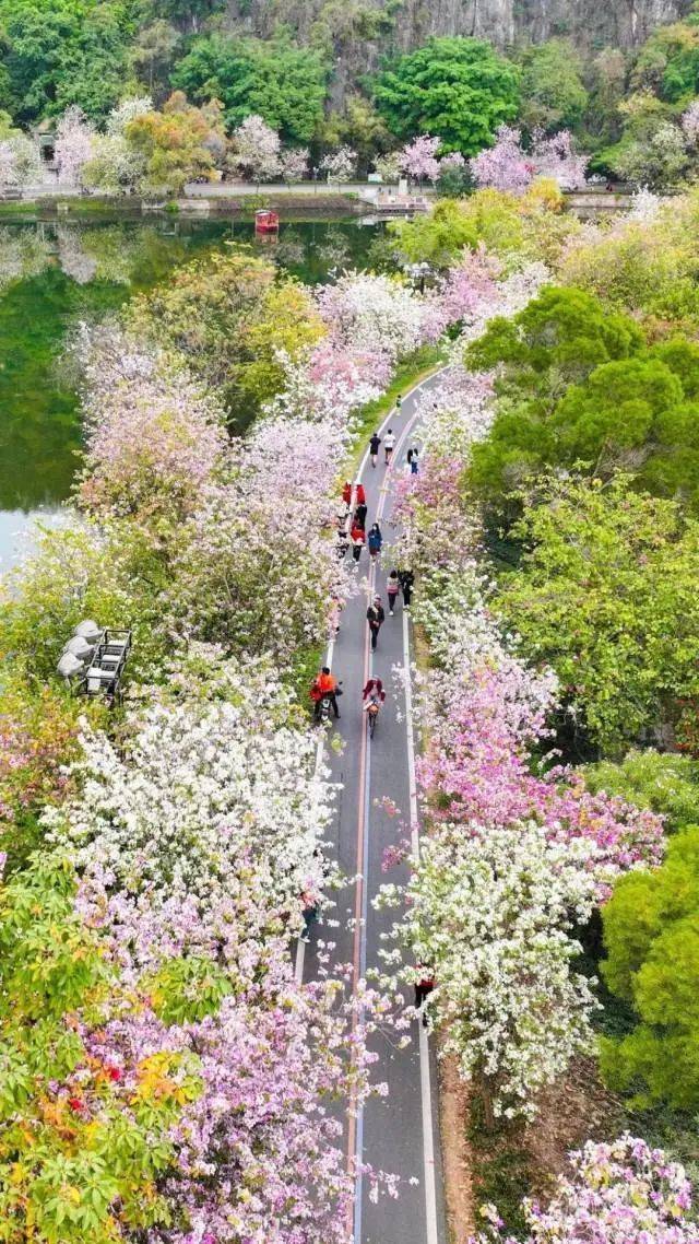 據(jù)了解,除了櫻花和宮粉紫荊,七星巖景區(qū)應(yīng)季開放的花還有玉堂春、茶花、禾雀花、黃花風(fēng)鈴木、勒杜鵑等,可謂百花色艷、紅粉芳菲。