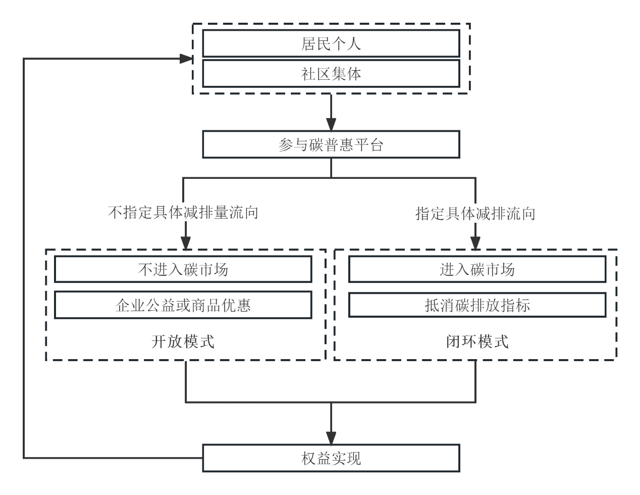 二是明確碳普惠活動中相關(guān)的產(chǎn)權(quán)問題。碳普惠自愿減排量由公眾活動中所產(chǎn)生,經(jīng)由平臺整合收集后,以完善的產(chǎn)權(quán)管理辦法加強(qiáng)管理。特別是在閉環(huán)模式中,有多處需要對碳減排量的權(quán)利歸屬進(jìn)行認(rèn)證,并結(jié)合市場機(jī)制設(shè)計(jì)碳普惠減排量的交易模式。經(jīng)過產(chǎn)權(quán)劃分,使碳抵消、碳交易轉(zhuǎn)讓、碳激勵兌付等能得到實(shí)現(xiàn)的依據(jù),從而保障各方的權(quán)益。