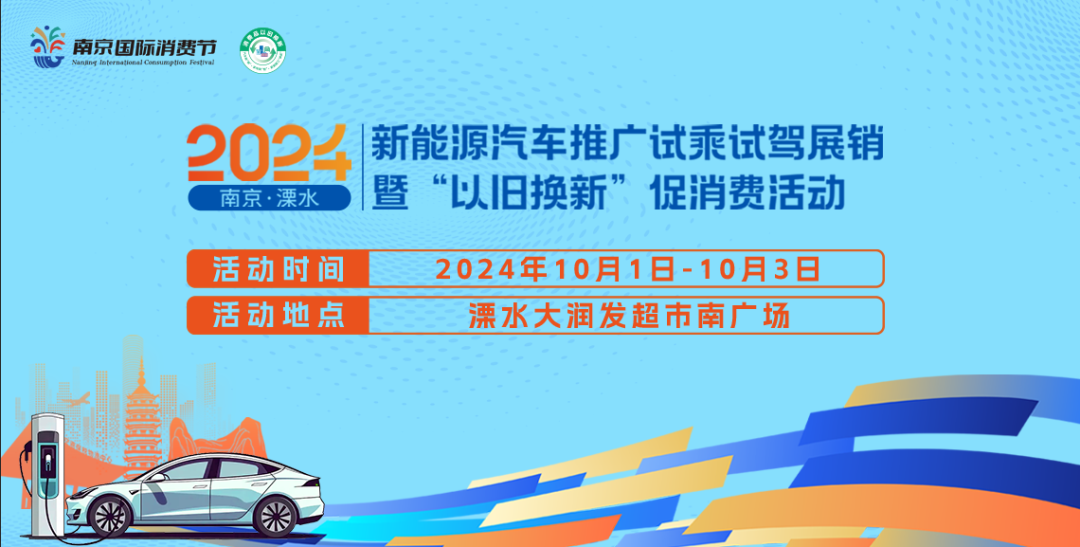 2024溧水新能源汽車(chē)推廣試乘試駕暨“以舊換新”促消費(fèi)活動(dòng) ,10月1日~3日連續(xù)三天,大潤(rùn)發(fā)超市南廣場(chǎng)購(gòu)車(chē)享好禮,還有家電家居以舊換新、美食、手工市集、農(nóng)副產(chǎn)品等展銷(xiāo)等你來(lái)逛。