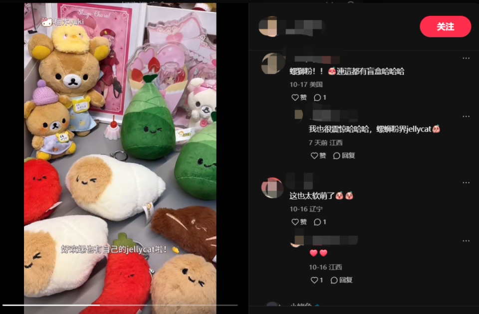 有些品牌為了吸引更多消費(fèi)者下單,今年雙11除了降價(jià),還在贈(zèng)品和聯(lián)名上“卷”了起來(lái)。好歡螺最近推出了限定螺螄粉食材萌物盲盒,萌物神似“Jellycat”引發(fā)了很多粉絲的激情下單;螺霸王則聯(lián)合王小鹵打造了“鳳爪節(jié)”,這兩個(gè)品牌,在很多粉絲眼中一直是絕配的的美食搭子。