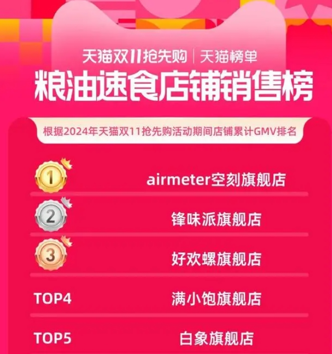 近日發(fā)布的天貓雙11第一階段(10月21日-10月24日)品牌成交排行榜中,螺螄粉再次出現(xiàn)在了糧油速食品類榜單上;“好歡螺旗艦店”成為糧油速食店鋪銷售榜TOP3,這已經(jīng)是好歡螺入駐天貓后第8年在雙11“爆單”了。