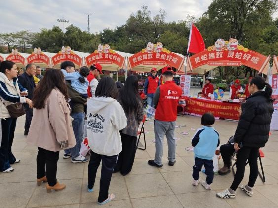 1月15日,東涌鎮(zhèn)“吉祥圩”——村居趣市多暨東涌社區(qū)“靈蛇有趣”紅色市集活動在東涌文化廣場舉辦。由廣州市科學(xué)技術(shù)協(xié)會主辦,廣州市科普志愿者協(xié)會、廣東省食品學(xué)會科技志愿服務(wù)隊承辦的廣州市科協(xié)“科普惠民”科技志愿服務(wù)成長扶持項目“健康鄉(xiāng)村行,知識惠萬家”活動也同期舉行。為豐富活動內(nèi)容,在2025年新春佳節(jié)即將來臨之際,學(xué)會邀請了廣州市食品檢驗所、廣州市益力多乳品有限公司等會員單位及廣州丘比食品有限公司一同支持,活動現(xiàn)場,熱鬧非常,本次活動共派發(fā)科普宣傳折頁950冊,禮品600份。