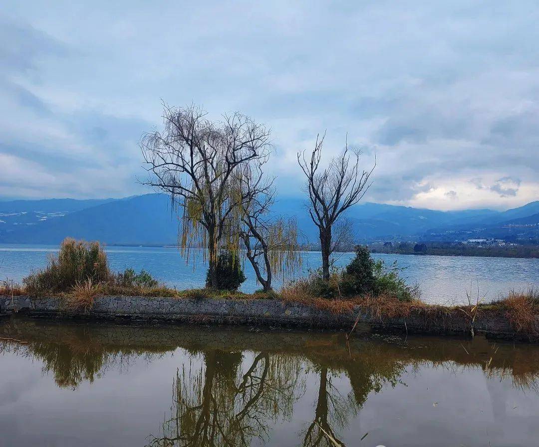 在西昌,曬太陽,不巧的是遇到降溫。連日的天氣預(yù)報(bào)小雨,讓我們有點(diǎn)點(diǎn)失望。只不過,常言道“山重水復(fù)疑無路,柳暗花明又一村”。這幾天,半山上明明是小雨,五分鐘后到了村里,卻又是陽光燦爛;核桃村湖邊微風(fēng)吹拂,雨絲撲面,到了大石板古村,卻又有夕陽暖照。我們遇見了邛海遠(yuǎn)山含黛,近水如煙的朦朧美,也遇見了她湖水蔚藍(lán),水光瀲滟的極致美。