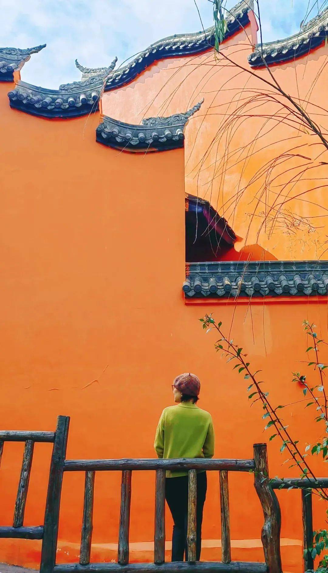 我們在大石板古村流連忘返。官媒這樣介紹它:“背倚螺髻山,面朝邛海,有著六百多年歷史的大石板古村距離西昌市中心僅15公里,卻別有“忽逢桃花林”之感。走進(jìn)古村,恍若跨越了歷史的長河,每一磚一瓦、一草一木,都飽含著歲月的故事,低語著古老的傳奇?!蔽绾蟮年柟饷髅亩鵂N爛,我們走在600多年前修建的石板路上,走近靈鷹寺,被錯(cuò)落有致的清代建筑廟宇、“愛馬仕橙”的墻院所吸引,漫步其間,深深感受到古村落的獨(dú)特魅力。