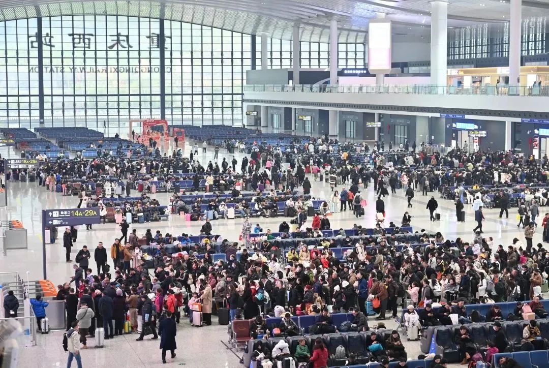 據(jù)沙坪壩區(qū)交通運輸委數(shù)據(jù)顯示,今年春節(jié)假期(1月28日至2月4日),轄區(qū)全社會跨區(qū)域人員流動量累計472.84萬人次。其中,重慶西站客運總量141.43萬人次,同比增長14.87%;沙坪壩火車站客運總量22.02萬人次,同比增長26.65%。