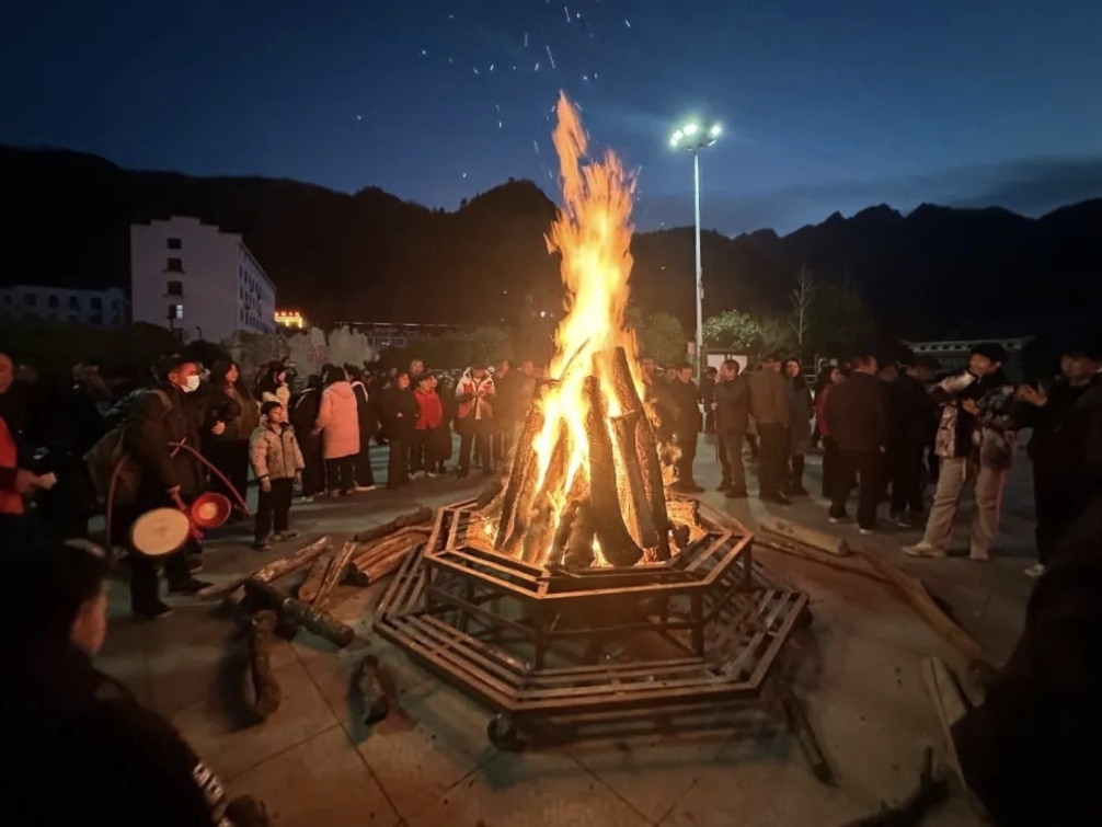 篝火狂歡:千人相聚,溫暖寒冬夜當晚18:30,大家共同點燃主篝火,熊熊火焰騰空而起,象征官山人民團結奮進的激情與力量。