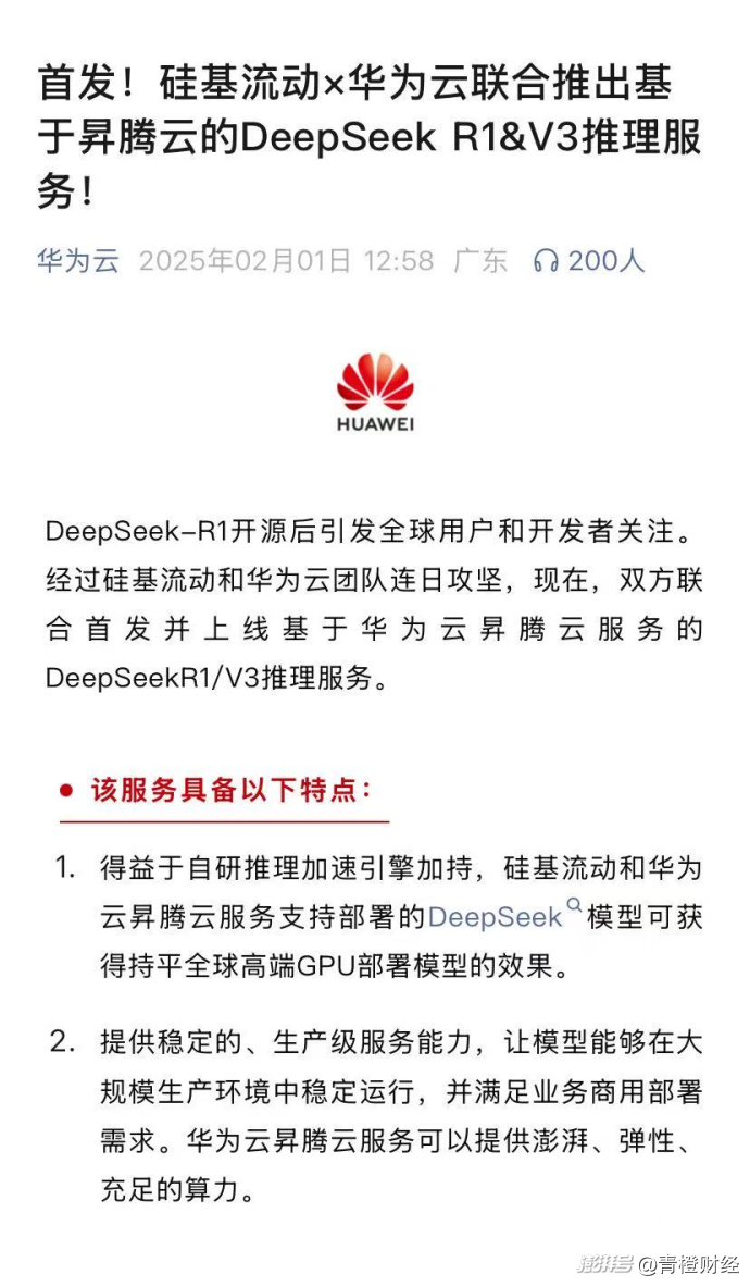 DeepSeek晉升科技頂流,給各行各業(yè)和普通民眾進行了一次空前的AI普及,尤其DeepSeek極致的使用成本,例如DeepSeek-R1的API定價僅為OpenAI旗艦模型的約3%。這必將催生海量的智能升級需求。另外,DeepSeek還完全開源,允許開發(fā)者自由調用和二次開發(fā),中小軟件企業(yè)可基于開源模型開發(fā)行業(yè)專屬AI應用。