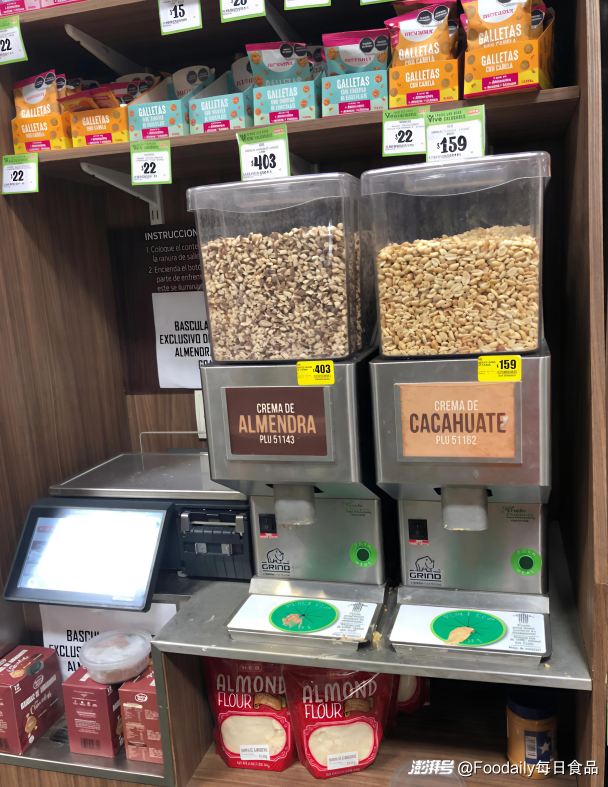 圖注:量販的堅(jiān)果醬和花生醬自助榨取機(jī),圖片來源:Mexi-Town