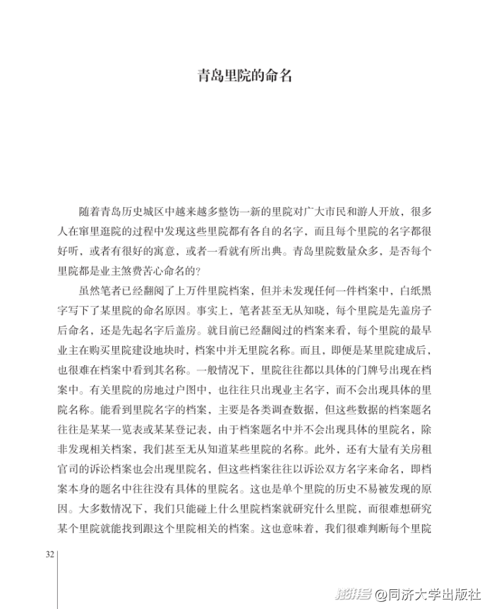 里院歷史一直是青島歷史研究中的薄弱點。最鼎盛時期,在青島曾有600多座里院,然而,長期以來,與里院相關(guān)的研究成果卻寥若晨星,并往往停留于對“物”的考證。