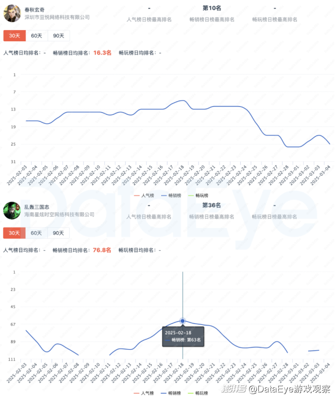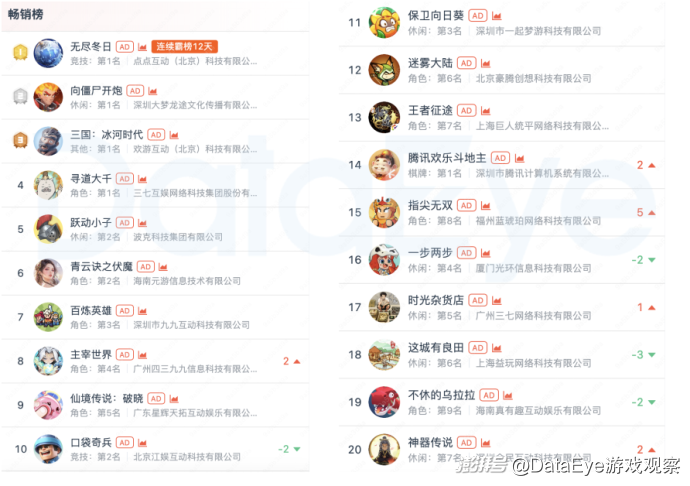 不僅如此,如《春秋玄奇》、《亂轟三國(guó)志》等產(chǎn)品,也在暢銷榜中處于持續(xù)下滑的狀況。