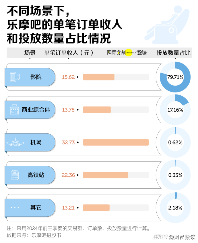 而由于機場、高鐵站的入場成本高,價格也更貴,樂摩吧在機場和高鐵站的單筆訂單收入高于其他公共場所[1]。