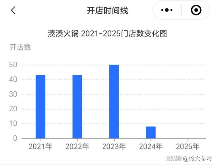 尤其對(duì)于定位中高端的湊湊來(lái)說,沖擊更大。2024年,湊湊餐廳數(shù)量首次出現(xiàn)年度負(fù)增長(zhǎng),同時(shí)也是其閉店數(shù)最多的一年。相比較之下,2023年,湊湊僅關(guān)閉15家餐廳,2022年,湊湊關(guān)閉3家餐廳。
