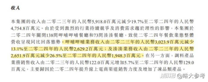 財(cái)報(bào)顯示,2024年來(lái)自呷哺呷哺餐廳的收入為26.29億元,同比減少13%,來(lái)自湊湊餐廳的收入為19.48億元,同比減少26.5%。