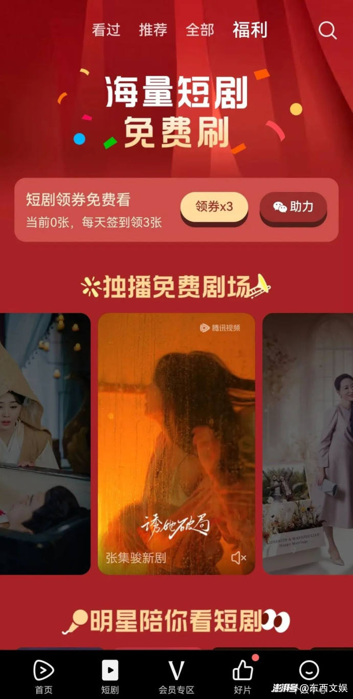 超前點映、獨家花絮劇照、云包場……這些會員轉(zhuǎn)化激勵向比較明顯的“手段”都用上了,不難看出,騰訊視頻在精品短劇上的會員轉(zhuǎn)化訴求進一步得到了強化。