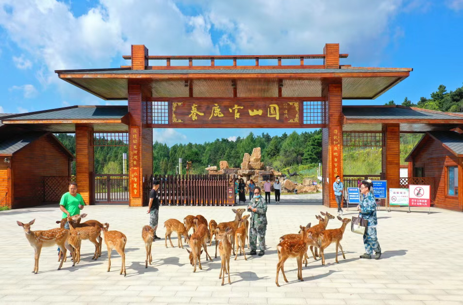 園區(qū)內(nèi)有假山、大門、群鹿、雕像、觀景平臺、1600多米的木棧道、800平方米鹿舍,以及百余頭梅花鹿。在這里你可以與梅花鹿零距離接觸、喂食、拍照,感受親近梅花鹿的快樂。