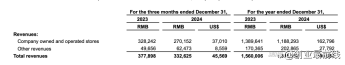 在此之前,Tims天好中國主要以自營門店為主。這些自營門店也是Tims天好中國的主要收入來源,2024年超過85%的收入來自于自營門店。