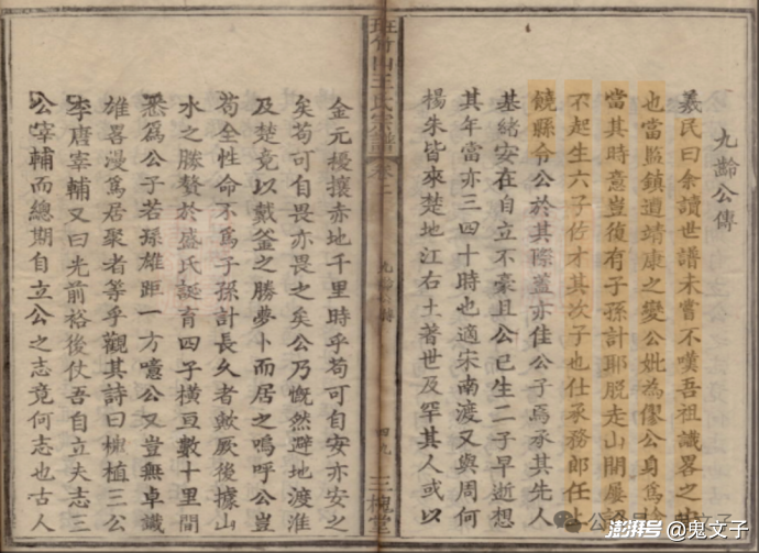 直到后來翻到一本《蘄水班竹山王氏宗譜》,其中《九齡公傳》開篇一句“余讀世譜,未嘗不嘆吾祖識略之宏也”,翻譯成現(xiàn)代話就是:“我翻完族譜直拍大腿,老祖宗這操作太震撼了!”