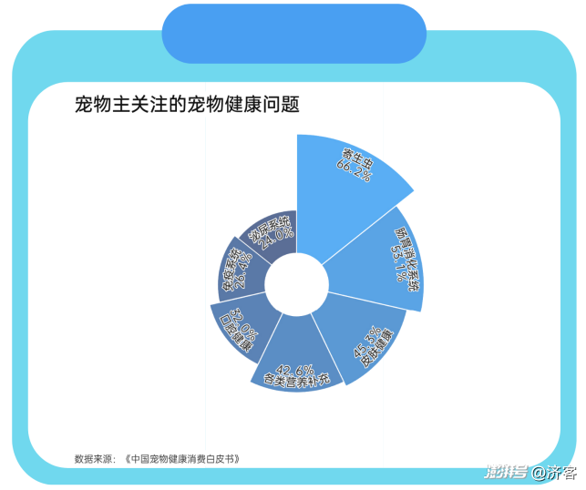 寵物在就醫(yī)時(shí),遇到的問(wèn)題主要集中在寄生蟲(chóng)、腸胃消化系統(tǒng)、皮膚健康和各類(lèi)營(yíng)養(yǎng)補(bǔ)充四大方面。調(diào)研數(shù)據(jù)顯示,這三類(lèi)問(wèn)題占據(jù)了寵物就醫(yī)病例的較大比例。
