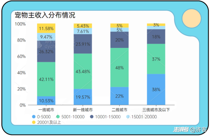 寵物醫(yī)療消費(fèi)的高昂,讓不少寵物主深感負(fù)擔(dān)。究其原因,寵物主的收入水平是一項(xiàng)不可忽視的因素。從國(guó)泰君安證券研究發(fā)布的《亞寵研究院2024中國(guó)寵物主養(yǎng)寵方式生活調(diào)查》中可以看出,超過(guò)六成的人群處于中產(chǎn)及以下的生活狀態(tài)。