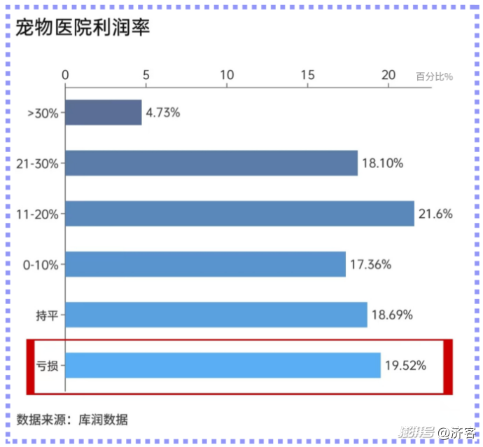 更為嚴(yán)峻的是,有20%的寵物醫(yī)院處于虧損狀態(tài),難以收回成 本,寵物醫(yī)院的運(yùn)營(yíng)變得更加困難。
