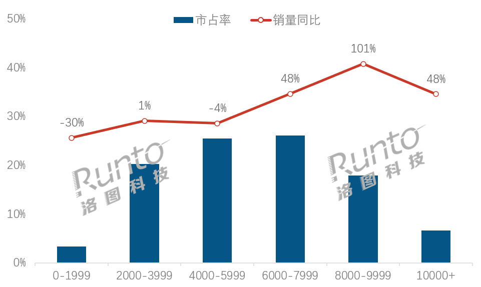 市場調(diào)研機構(gòu)洛圖科技公布的《中國大陸筆記本電腦線上零售市場月度追蹤》報告顯示,2025年第一季度中國大陸筆記本電腦線上市場(不含抖音、快手等內(nèi)容電商)均價為6276元,同比增長11%。高端市場漲幅尤為明顯,其中8000元-9999元價位段,筆記本電腦銷量同比增長高達101%。