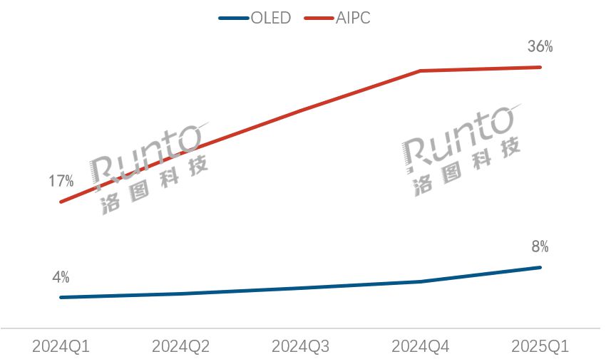 盡管OLED屏幕依然屬于小眾需求,但其高對比度、低功耗的特性,愈發(fā)被高端市場和試圖挑戰(zhàn)MacBook的廠商認可。洛圖科技統(tǒng)計數(shù)據(jù)顯示,今年第一季度OLED產(chǎn)品在整體筆記本電腦線上市場份額已達8%,同比增長超過140%。