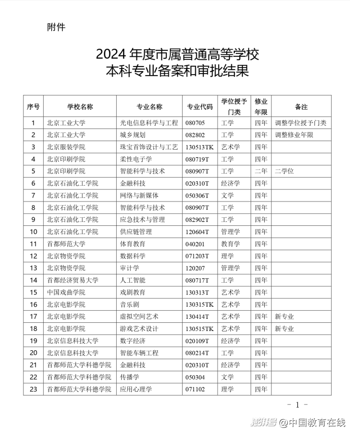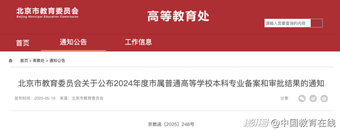 5月19日,北京市教委發(fā)布關(guān)于2024年度市屬普通高等學(xué)校本科專業(yè)備案和審批結(jié)果的通知。
